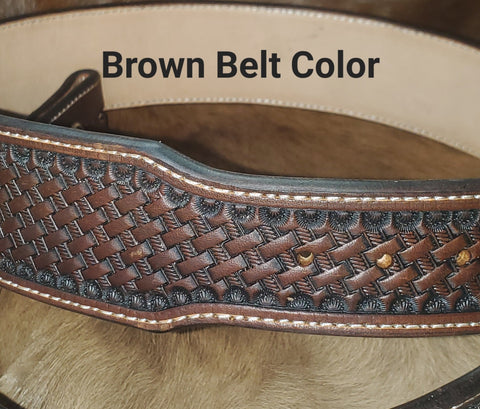 1.5" wide Arrowhead basketweave belt with option for initials on tail.