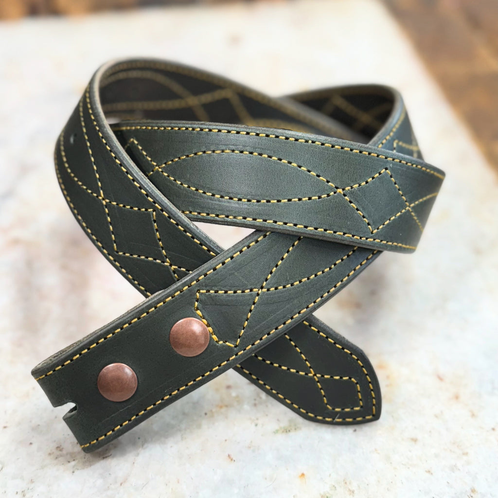 1.5" wide single layer bridle leather belt with decorative "Gunslinger" stitch